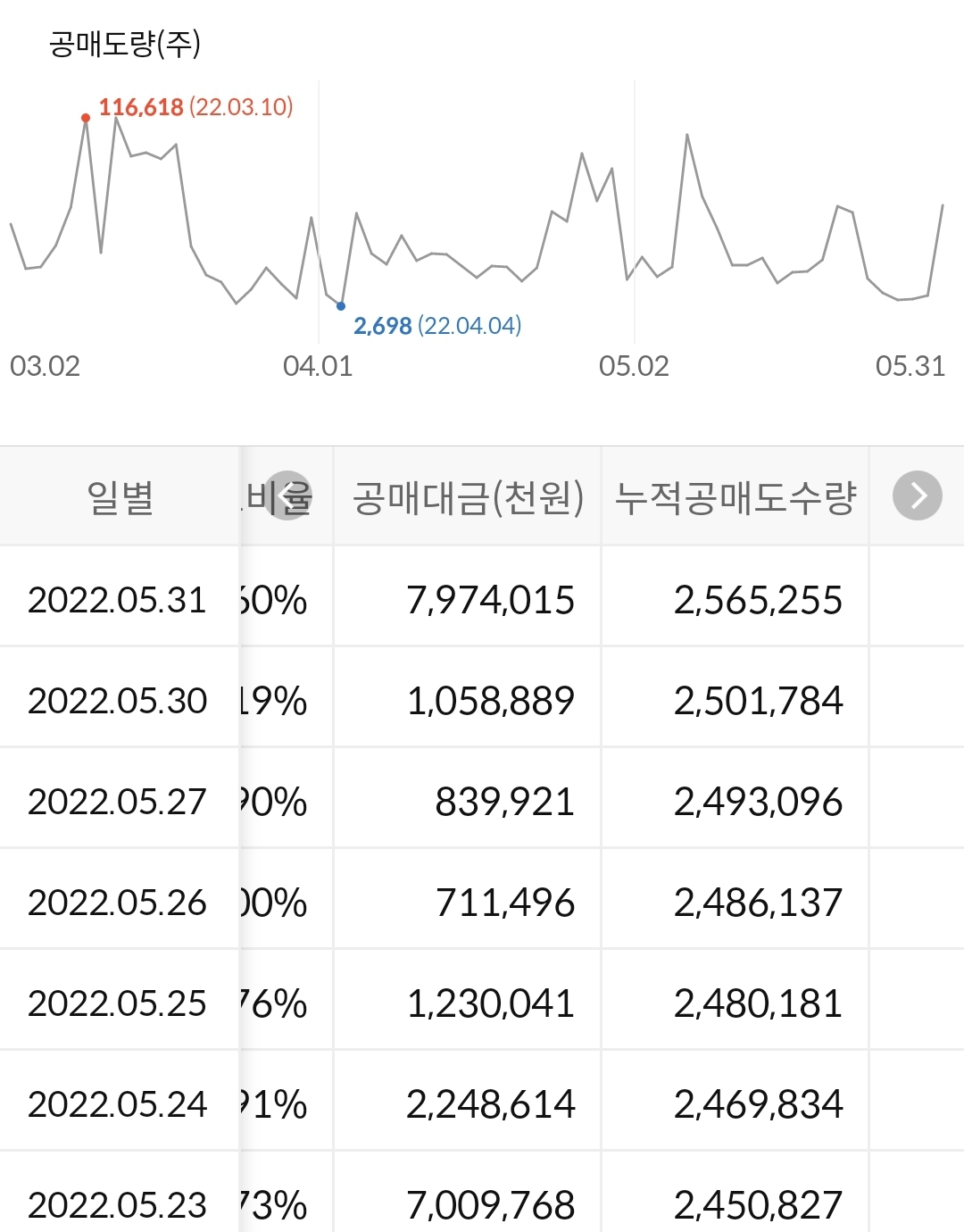 2) 공매도 누적 수급