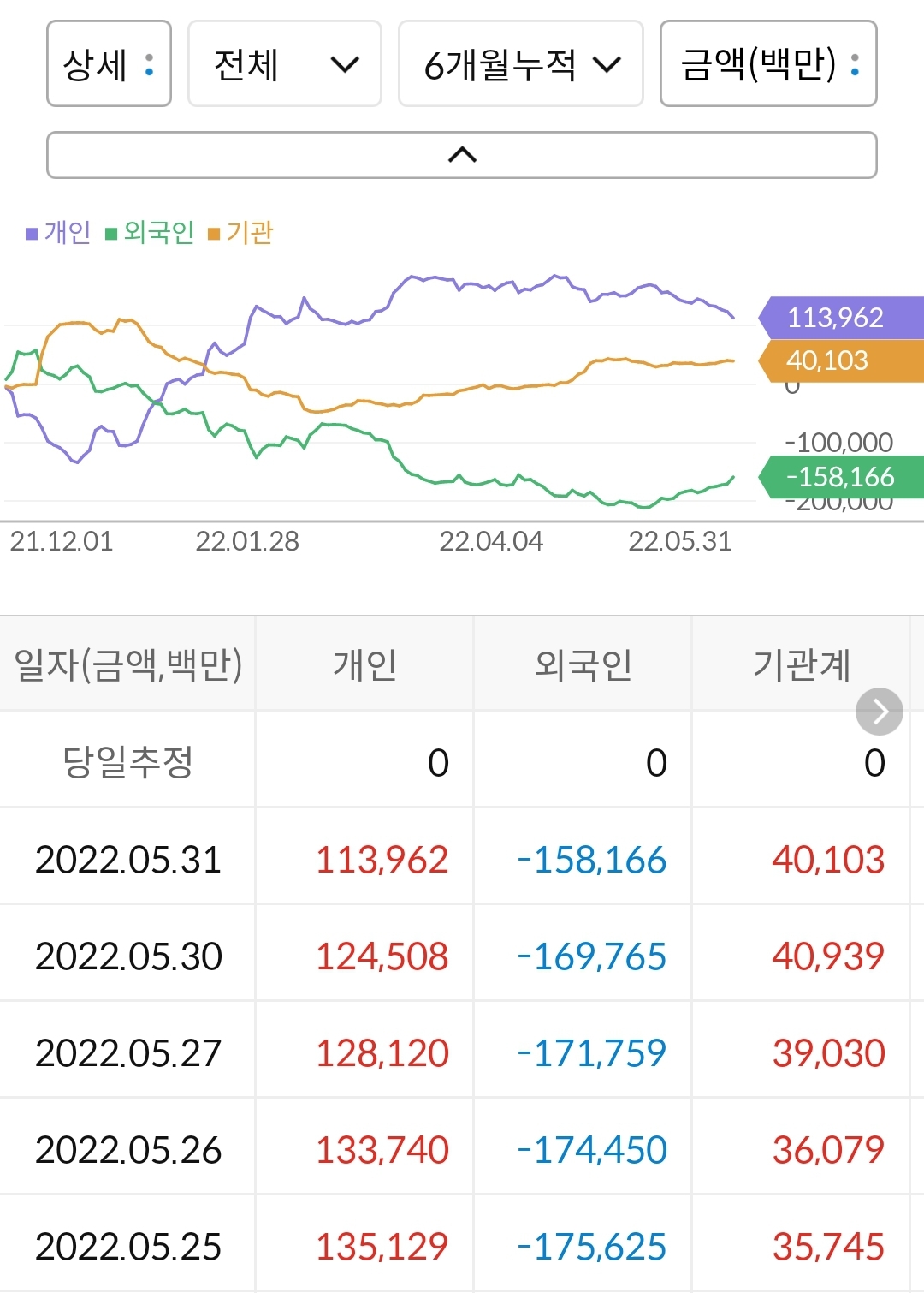 - 개인이 1,139억 매수, 외국인이 -1,581억 매도, 기관이 -401억 매수