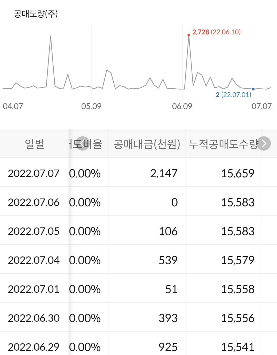- 개인이 621억 매도, 외국인이 599억 매수, 기관이 7억 매수
