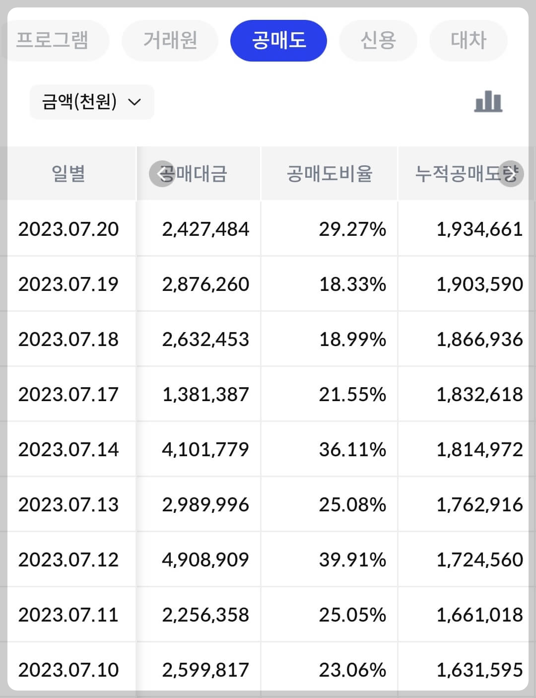 2) 공매도 누적 수급