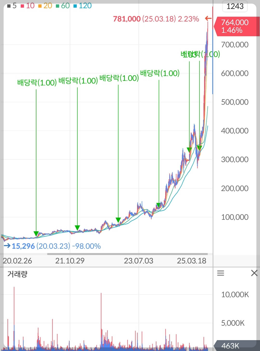 결론부터 말씀드리면 이런 상승각도에서 무리하게 신규진입을 하는건 당연히 지양하셔야 합니다. 차익실현 욕구가 굉장히 강해지는 지점이면서도 FOMO에 의한 개인 투자자들의 시장 매수세도 붙을 수 있는 구간입니다. 변동성이 커진다는 것을 의미하겠죠.